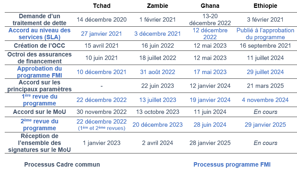 En 2025, quatre pays avaient demandé à bénéficier d’un traitement de dette au titre du Cadre commun : le Tchad, la Zambie, l’Ethiopie et le Ghana.